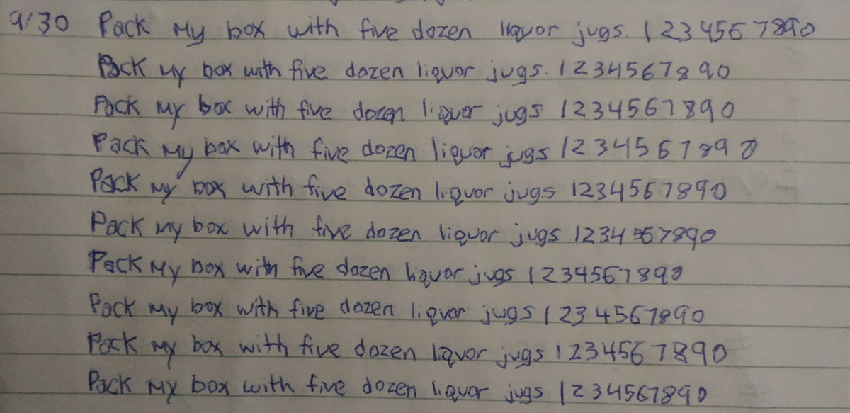 Slowly getting more comfortable with writing with my right. The letters k, x, and h are hard. Last line doesn’t seem too bad.