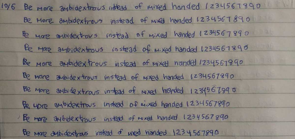 I am a lefty. This is my right hand trying to write things – 10 lines a day.