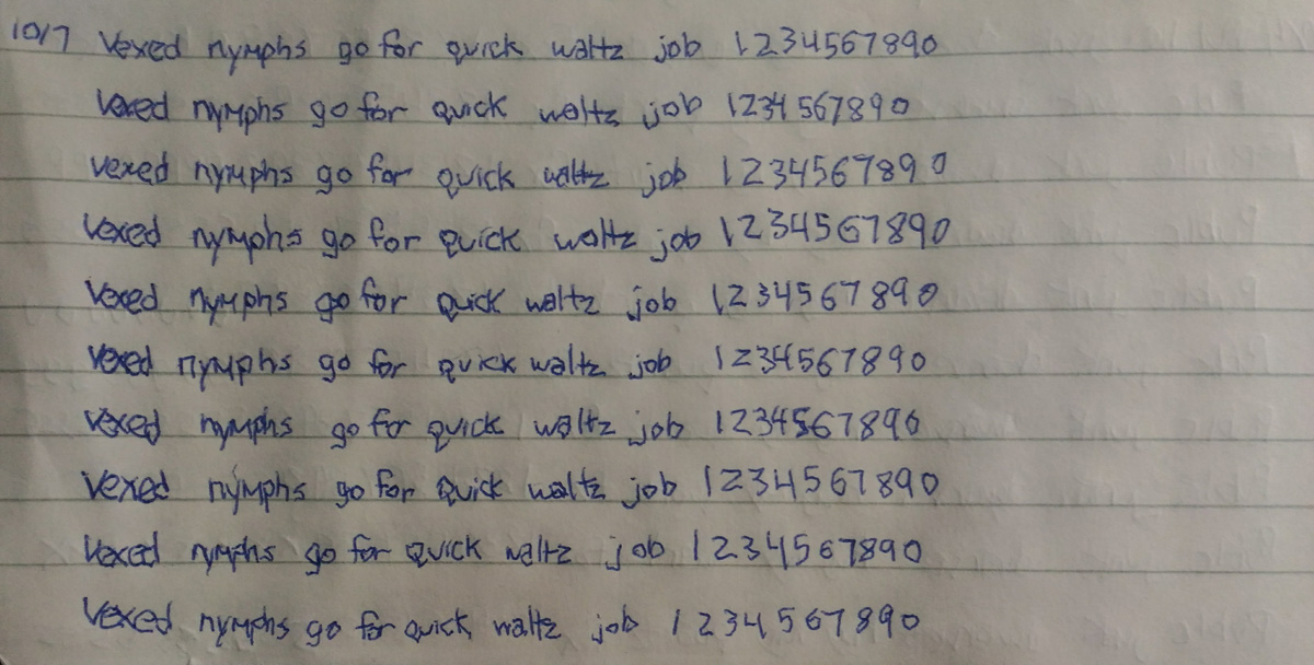 I am a lefty. This is my right hand trying to write things – 10 lines a day.