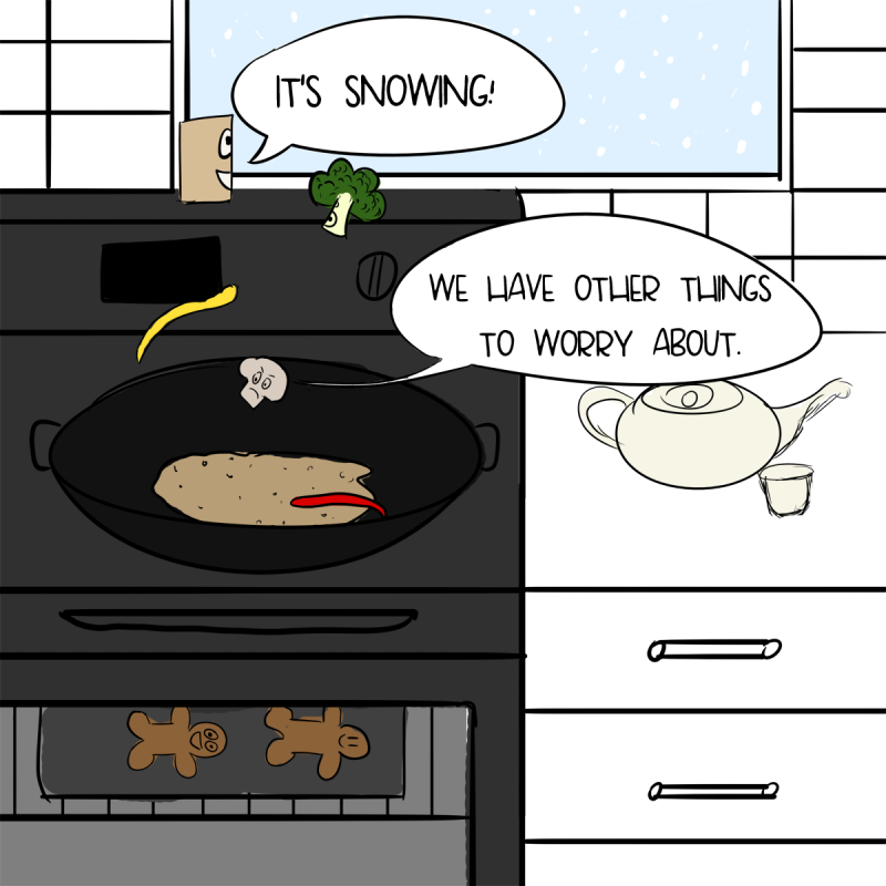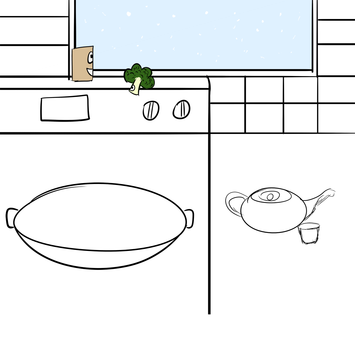 Random objects of the day: tofu and veggie stir fry, Chinese teapot and cup